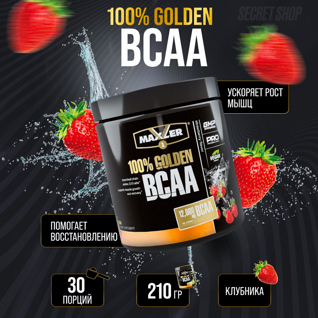 Аминокислоты Maxler 100% Golden BCAA Клубника, 210г, БЦАА в соотношении 2:1:1, В форме порошка, 30 порций