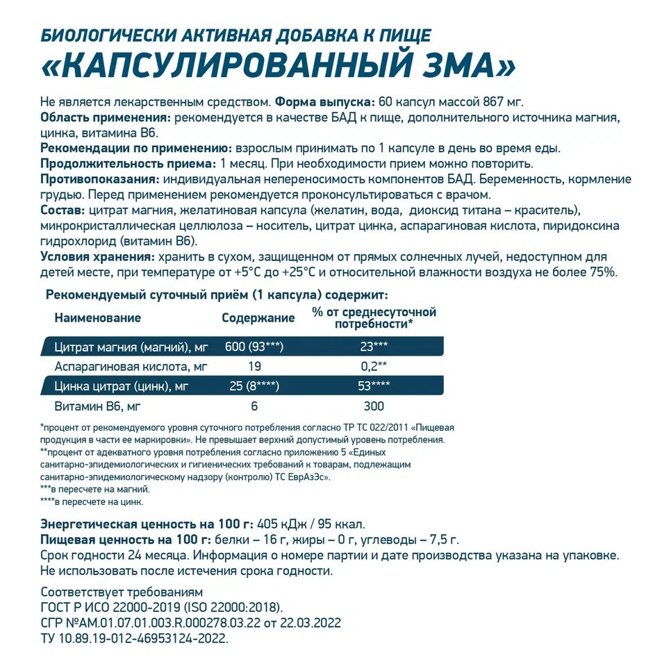 БАДы ЗМА комплекс ZMA, B6 цинк магний бустер тестостерона, 90 капсул