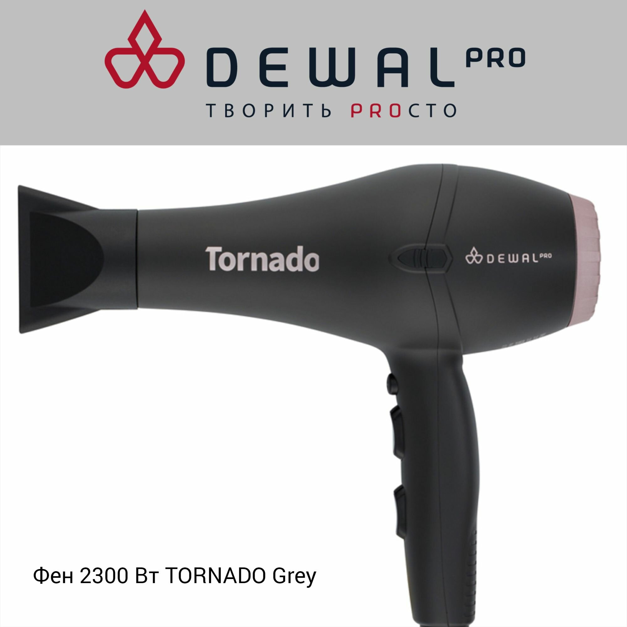 Фен DEWAL PRO TORNADO, серый, 2300Вт, ионизация, 2 насадки