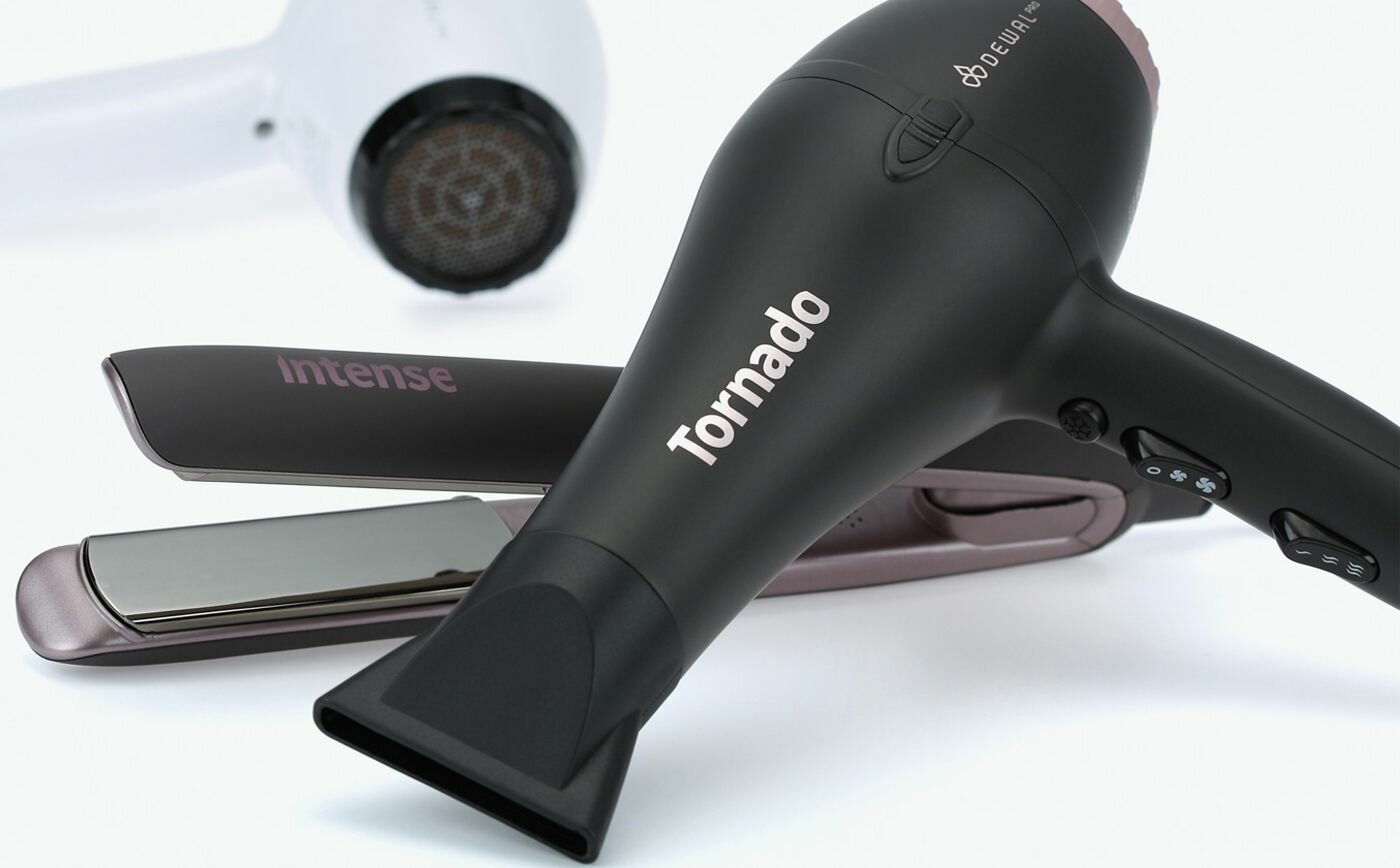 Фен DEWAL PRO TORNADO, 2300 Вт, 2 насадки, ионизация, черный