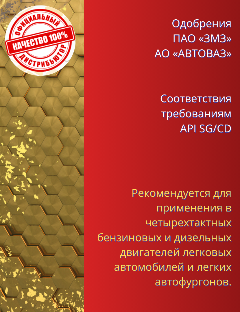 | Отзыв: | Масло самое то для наших двигателей , купил волгу с 406 двигателем пробег под 400 тыс , лью лукойл , после 50 тыс пробега менял прокладку гбц , мотор чистый где можно было посмотреть . Немного падает давление при длительном пробеге . Цена приятная , а по характеристикам не чем не хуже зарубежных |