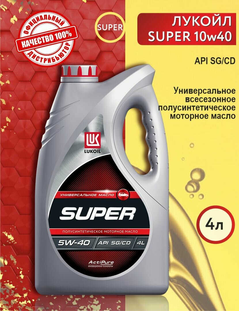 Полусинтетическое моторное масло ЛУКОЙЛ Супер SG/CD 5W-40, 4 л