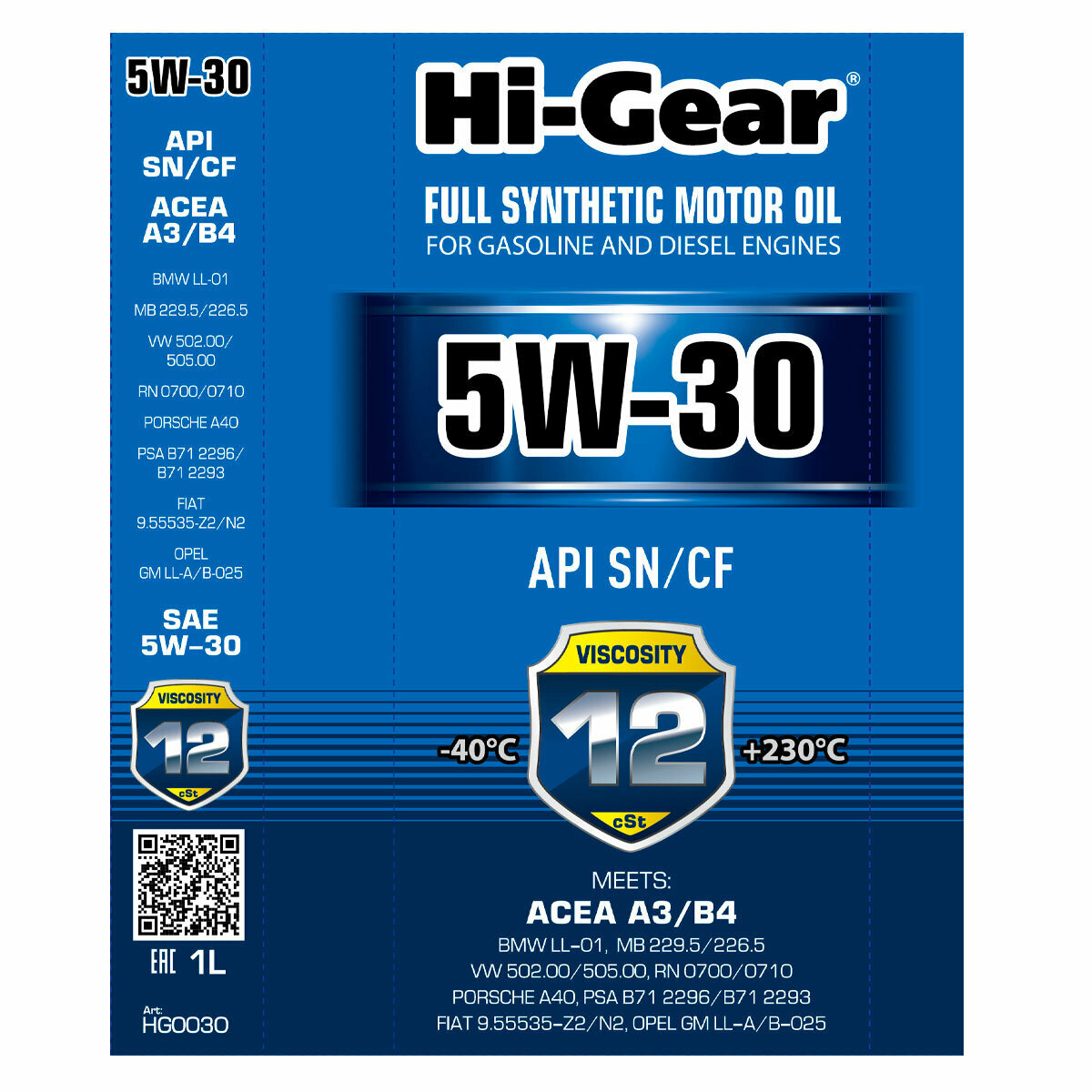 Моторное масло Hi-Gear 5W30 SM/CF, 1л (арт. HG0030) HG0030