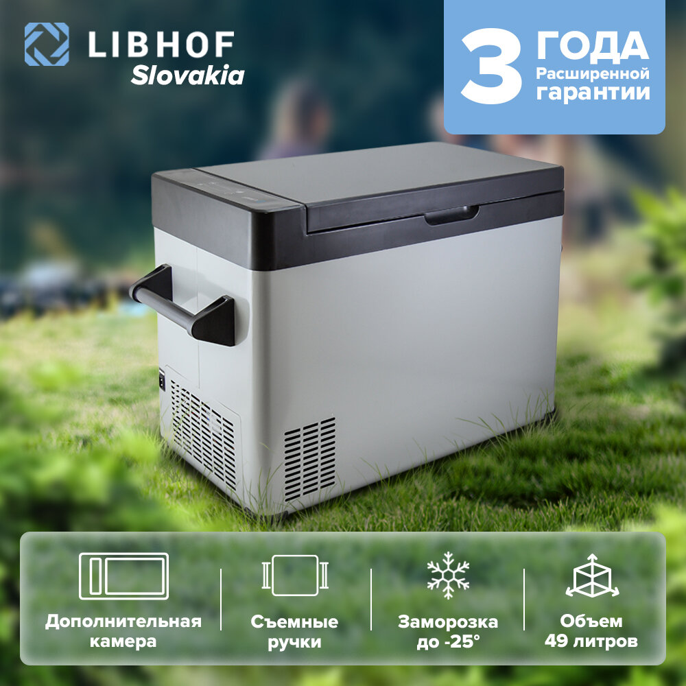 Компрессорный автохолодильник LIBHOF Q-55 49л (-25/+10°C, 12/24/220В)