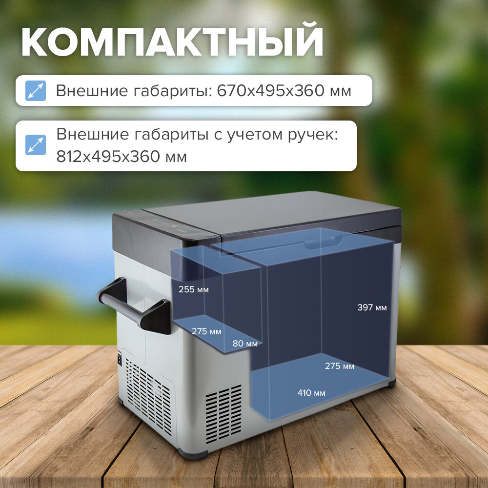 | Отзыв: | Радует в нем то, что охлаждает и держит температуру в полном объёме. В него можно запихнуть все и даже больше. Работает тихо. Я бы не сказал, что он компактный, но для меня это плюс. Для путешествий с семьёй на автомобиле самое то |