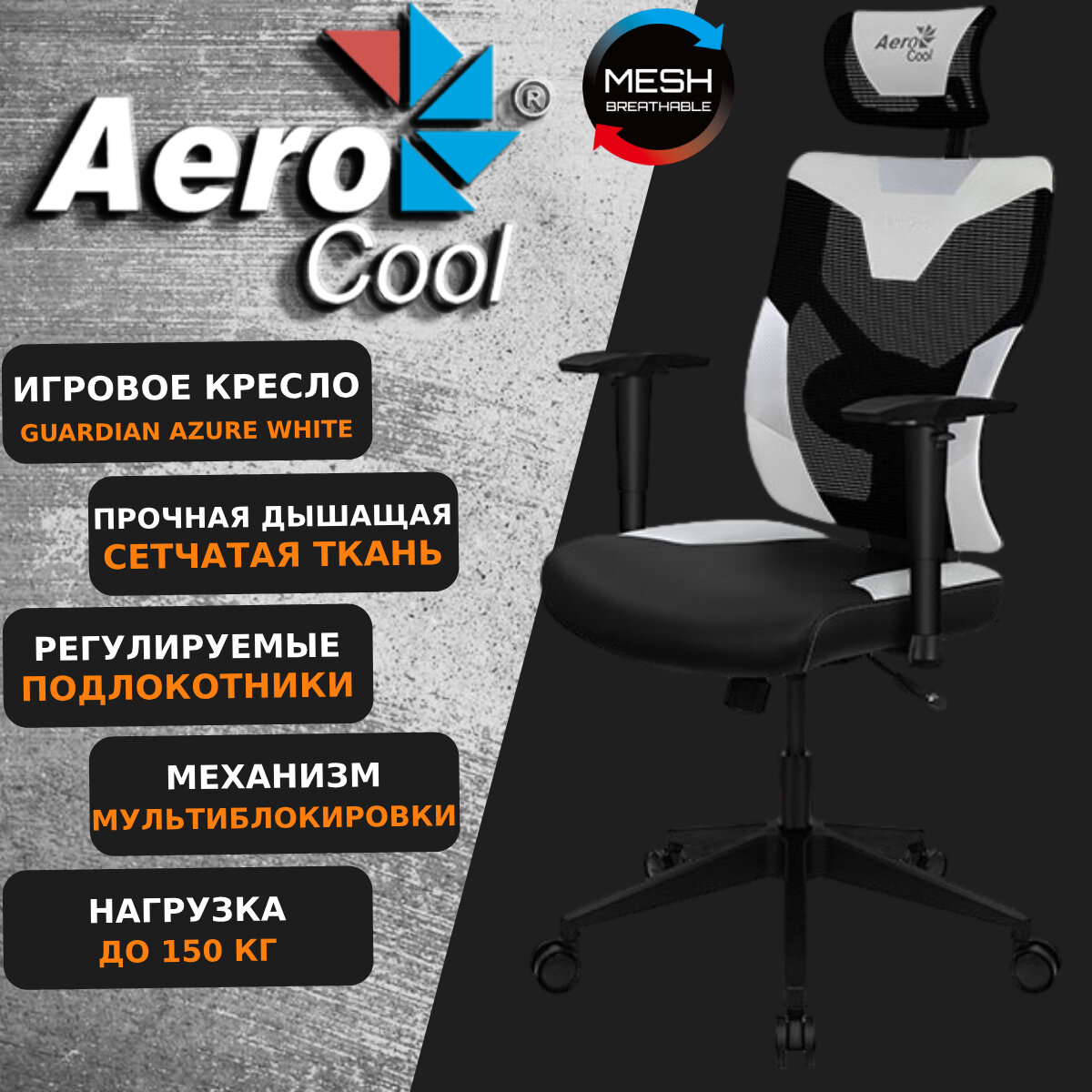 Кресло игровое Aerocool Guardian, на колесиках, искусственная кожа/сетка, черный [guardian azure white]