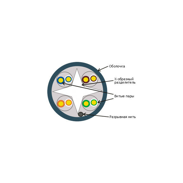 Lanmaster Кабель LANMASTER UTP, 4 пары, кат. 6, с перегородкой, 550Mhz, PE, для внешней прокладки (305 м)