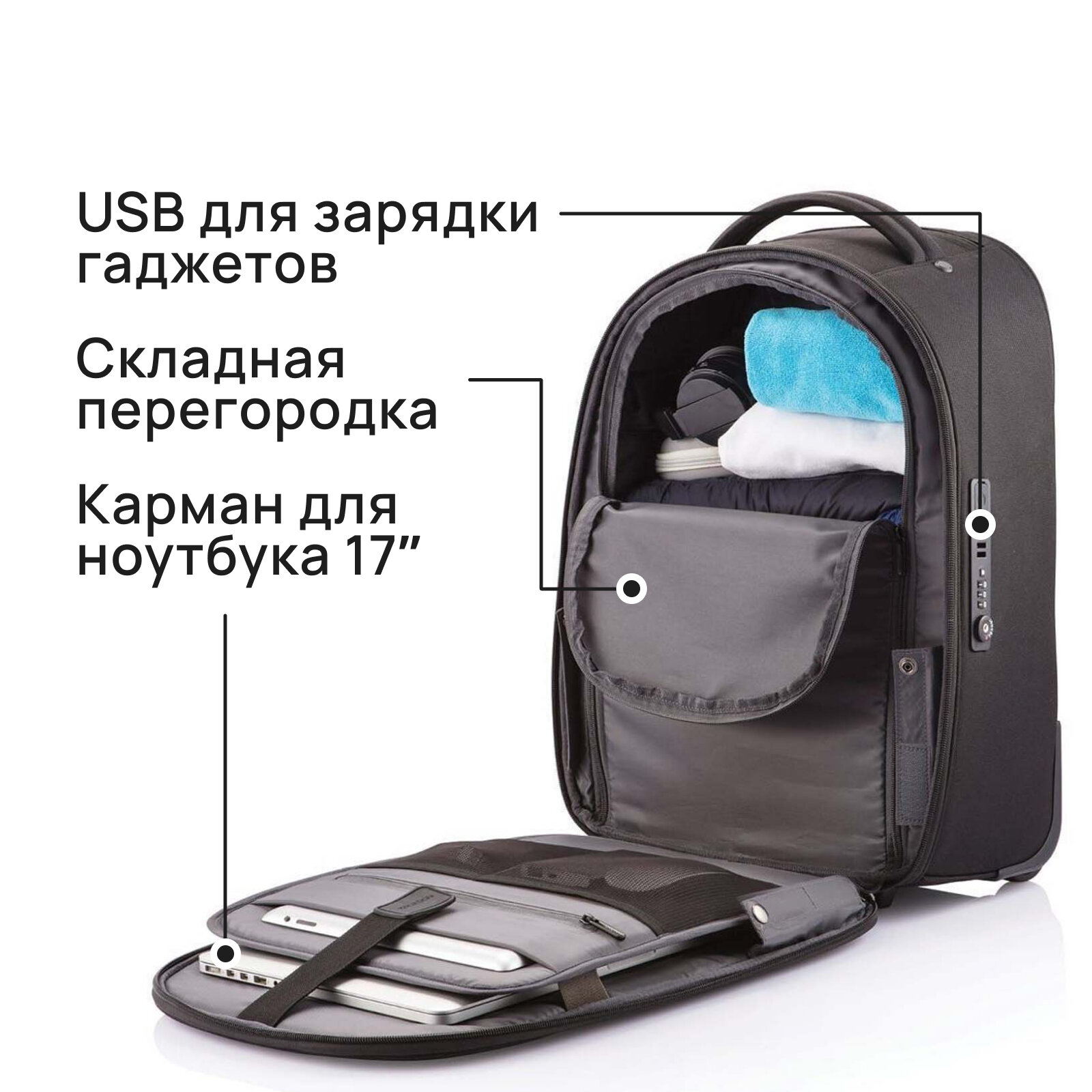 Рюкзак на колесах XD Design Bobby Trolley P705.771, черный интересное: