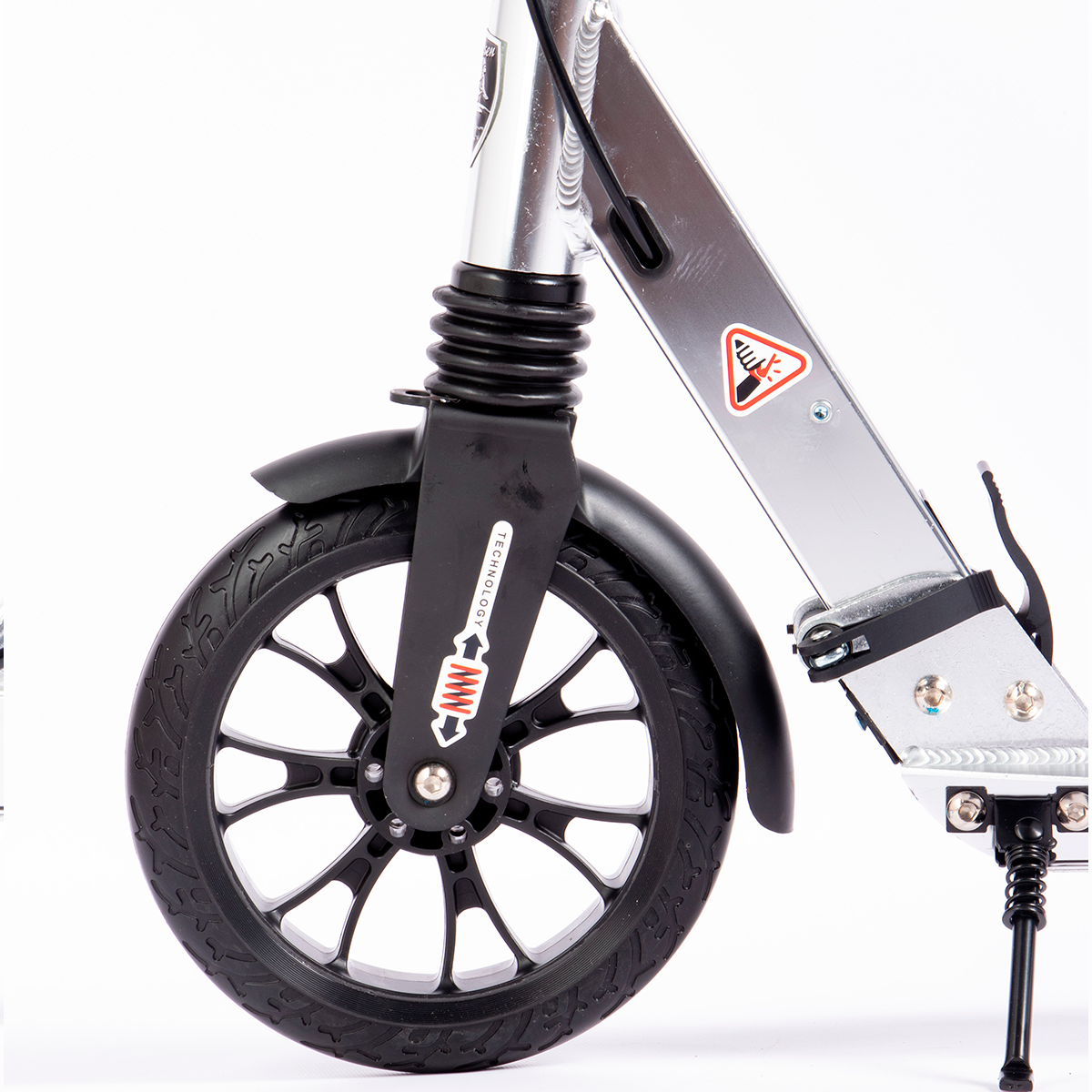 Пришло все целое. Наклейки плохо проклеены, но как по мне, в этом ничего страшного нет, ибо покрашен хорошо и сам по себе красив, так что, как они отклеятся, я не сильно и растроюсь. Инструмент для сборки уже в комплекте, достаточно удобный и мобильный. Один самокат пришел с полуразобранным суппортом, пришлось настраивать самой, второй был уже настроен изначально. Под свой вес регулируете тормоз сами. Все интуитивно понятно при сборке и проблем не возникло. Складывается тяжело, нужно приложить хорошее усилие на язычок, думаю, со временем, разработается механизм и будет легче. В целом впечатления только позитивные, самокат оправдал ожидания и приносит прекрасное удовольствие от катания. |