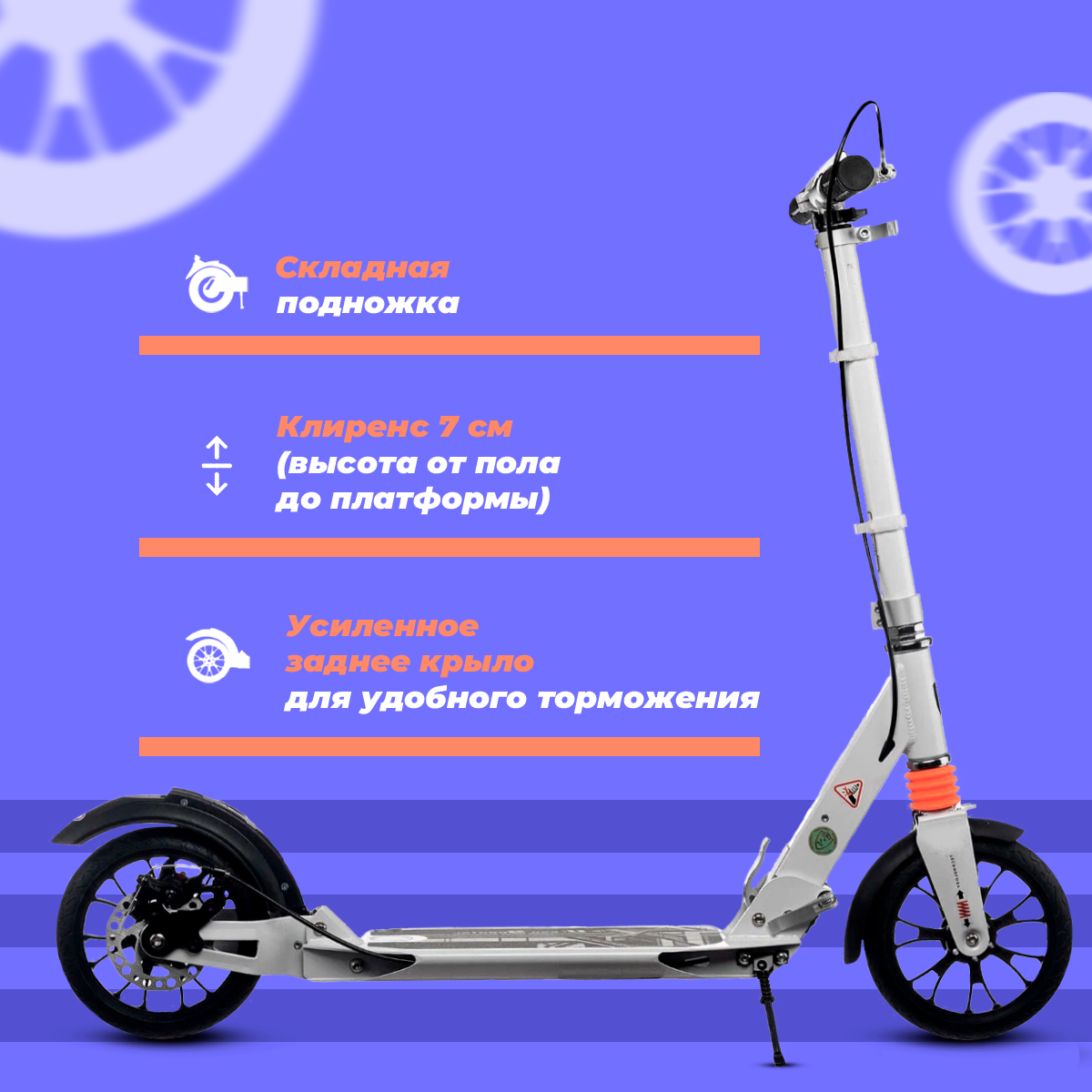 СохранитьСамокат городской двухколесный с дисковым тормозом белый интересное: