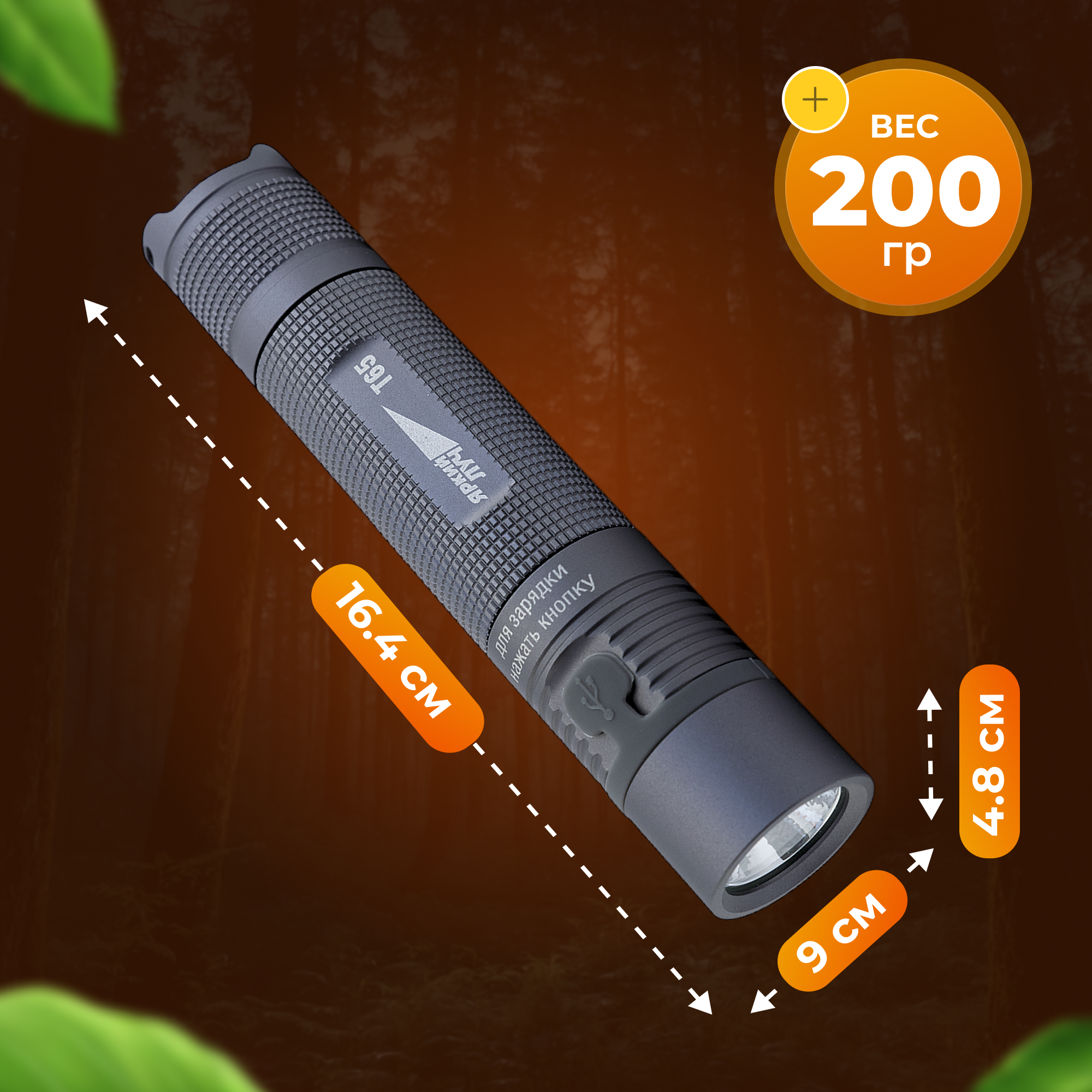 Фонарь ручной Яркий ЛУЧ G15 "Tactic" Nichia 219D max900лм, 5 реж., Ipx8, акк 18650 2600mAh с встр. З