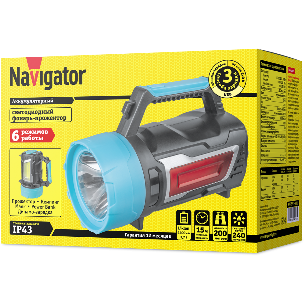 Фонарь Navigator 14 267 NPT-SP21-ACCU с Powerbank и динамо-зарядкой
