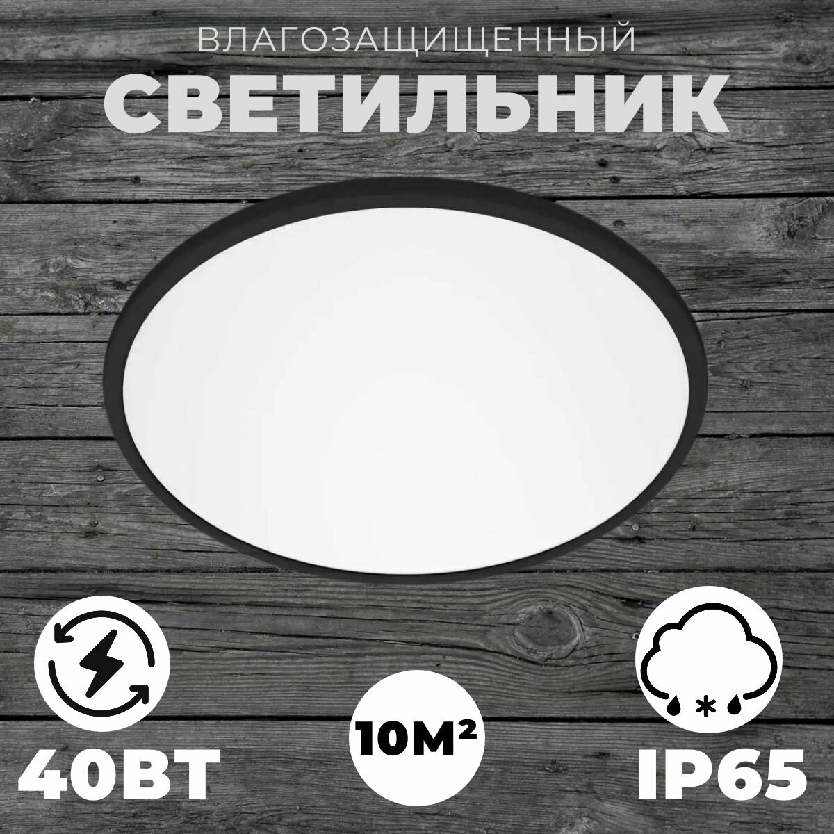 LEEK св-к св/д декоративный влагозащ 40W(3500lm) 5000K 6K черный, круг 375x46 ЖКХ BL IP65