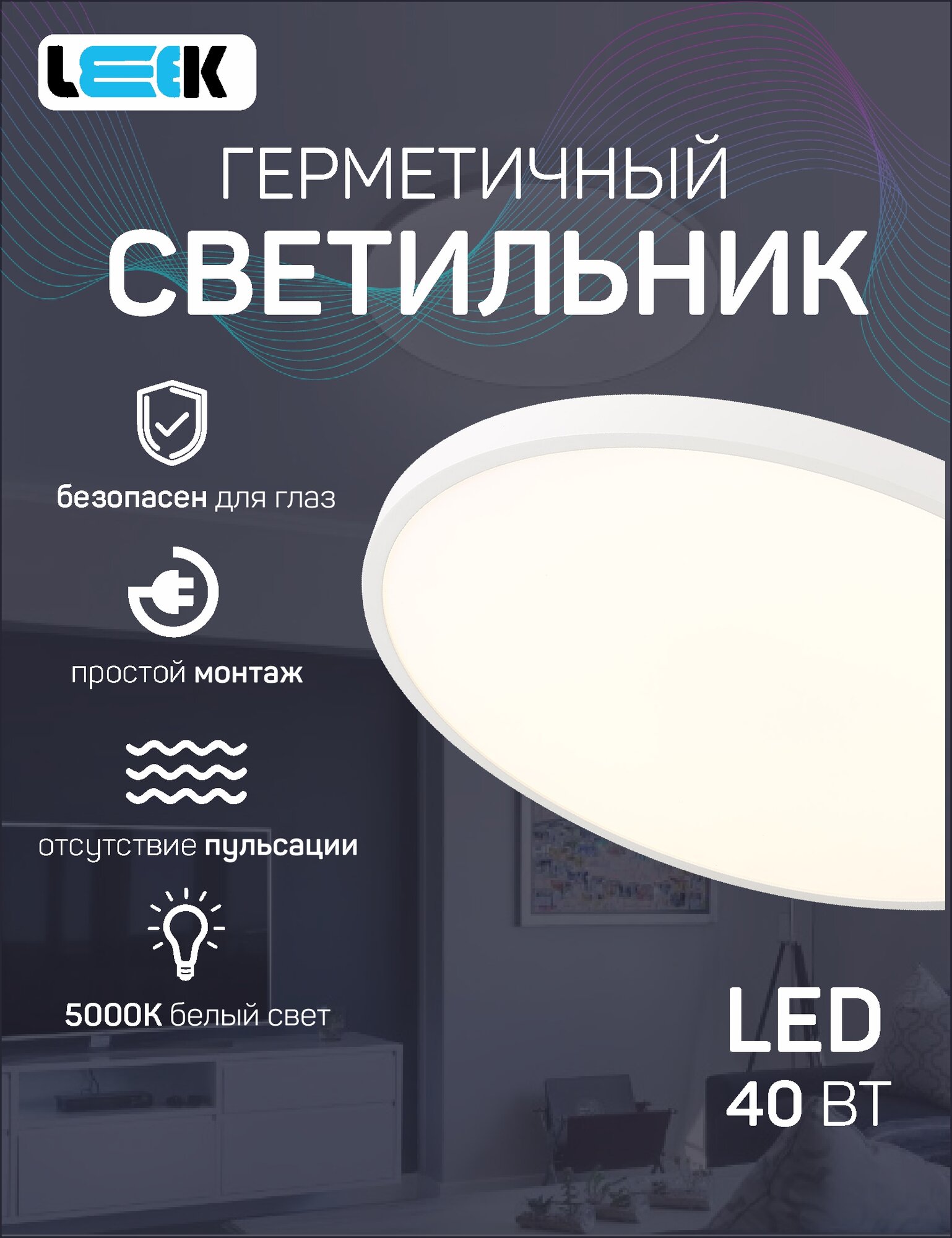 Светильник светодиодный потолочный LE LED BL IP65 40W 5000K LE062500-003 LEEK
