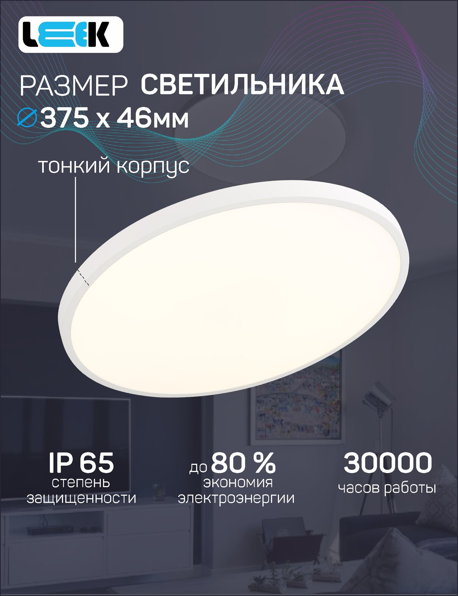 СохранитьLEEK светильник светодиодн. декоративный влагозащ 40W(3500lm) 5000K 5K круг 375x46 ЖКХ BL IP65 (арт. 804181) интересное: