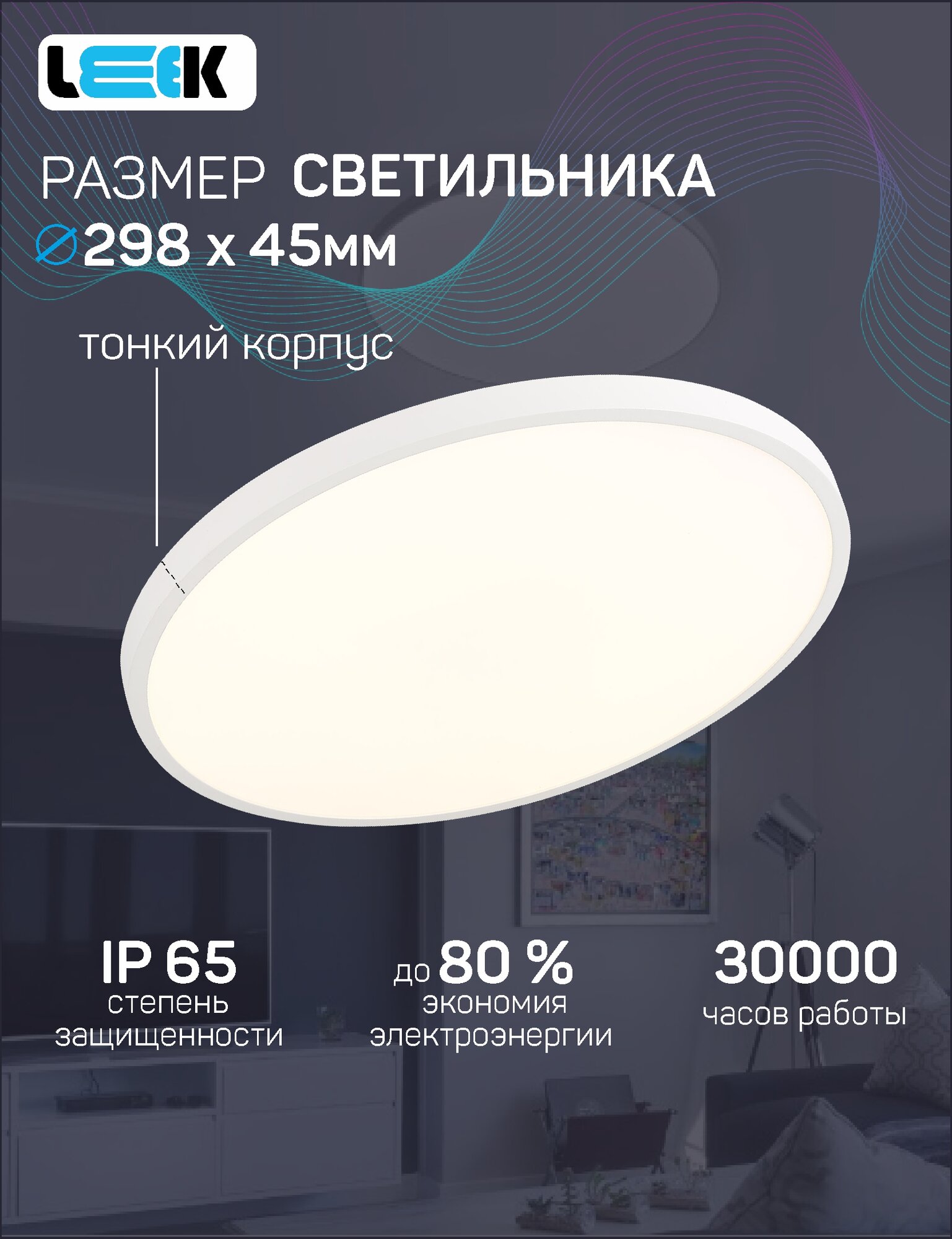 LEEK светильник светодиодн. декоративный влагозащ 24W(1920lm) 5000K 5K круг 298x45 ЖКХ BL IP65 (арт. 804180)