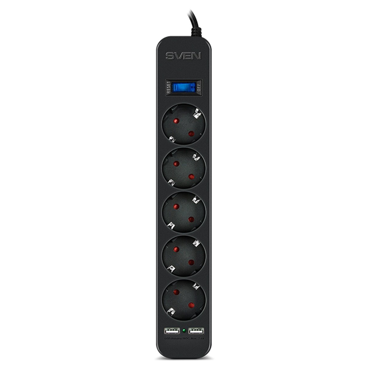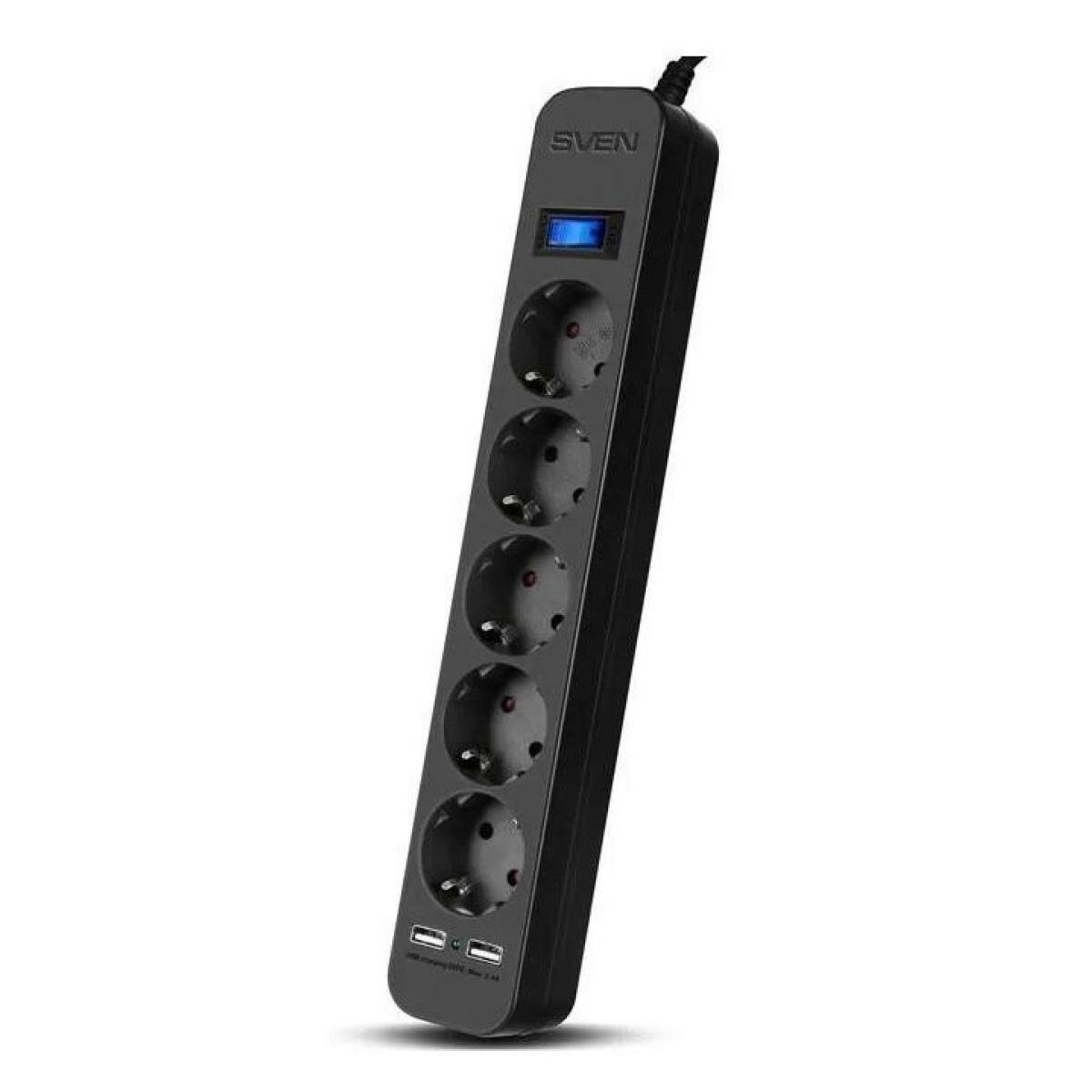 Сетевой фильтр SVEN SF-05LU 5.0 м (5 евро розеток, 2xUSB) черный (SV-018856)