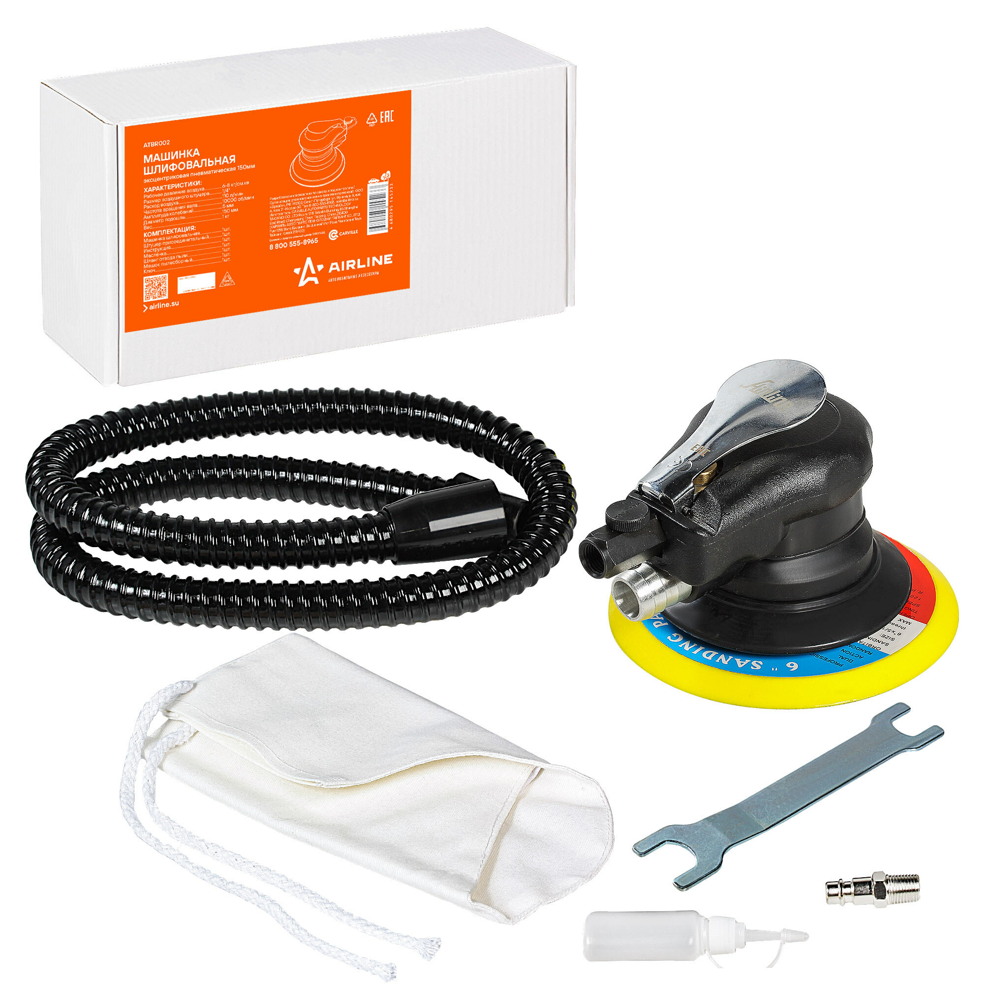 Машинка шлифовальная, Аirline, эксцентриковая, пневматическая, 150мм 10000об/мин, ATBR002