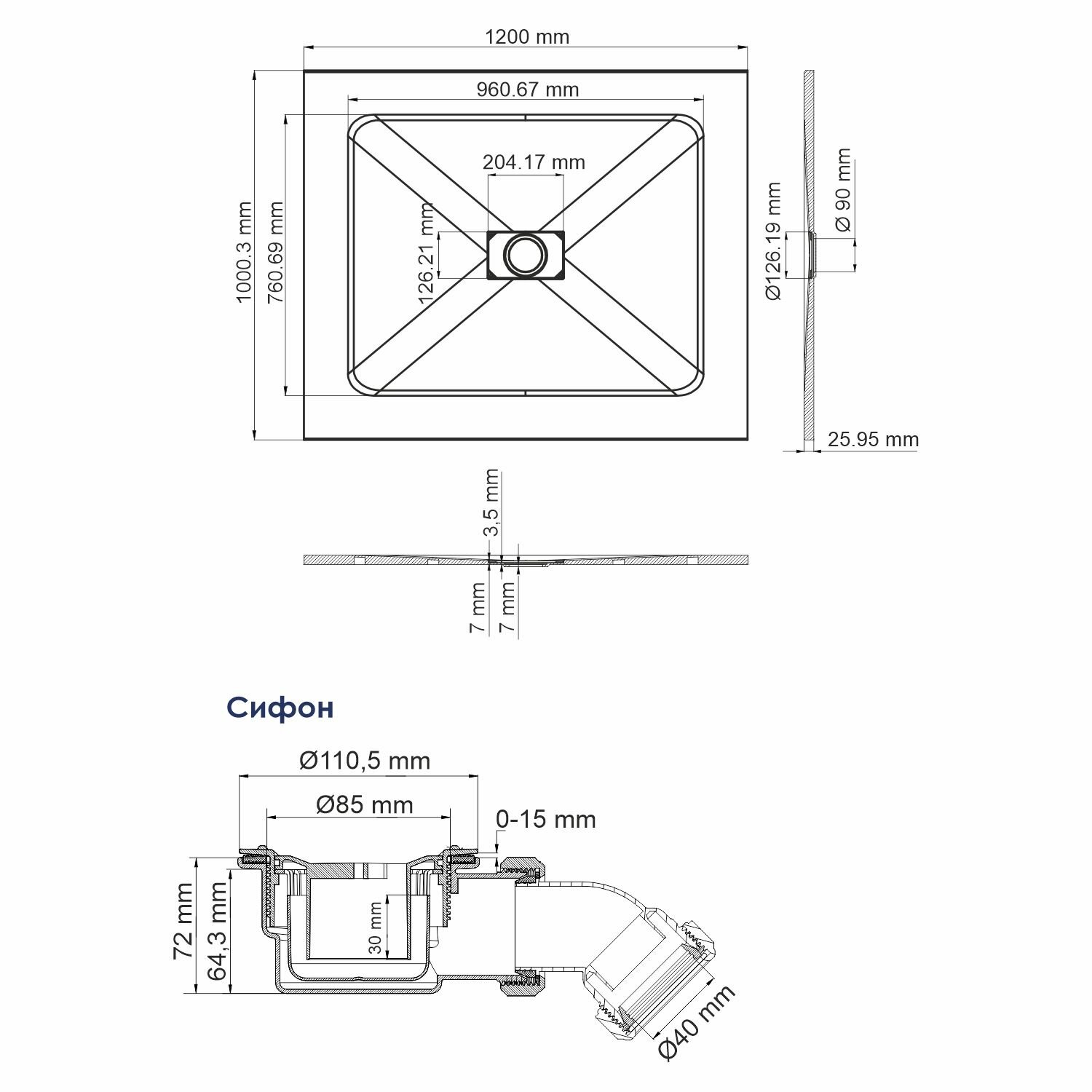Душевой поддон WasserKRAFT Elbe 1200x1000x26 черный 74T10 (сифон и декоративная накладка в комплекте)