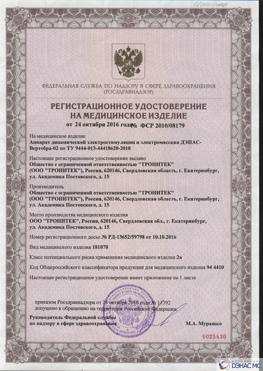 Дэнас нейродэнс-вертебра 02 для лечения заболеваний спины и позвоночника