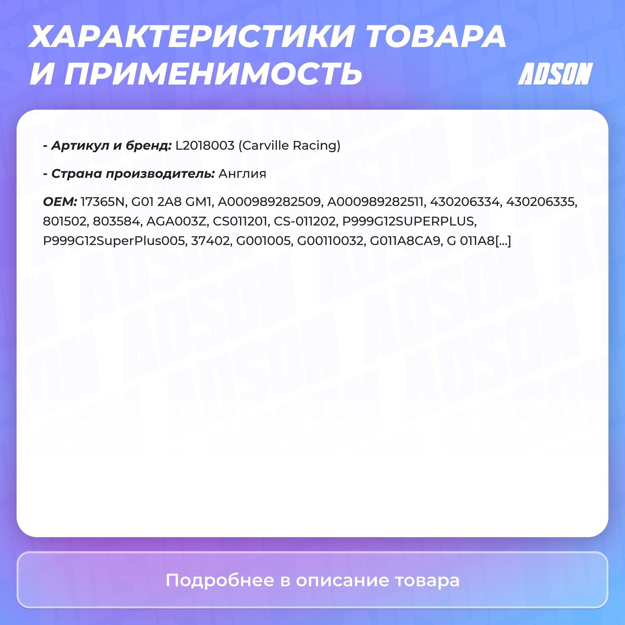 L2018003 Carville Racing арт. L2018003