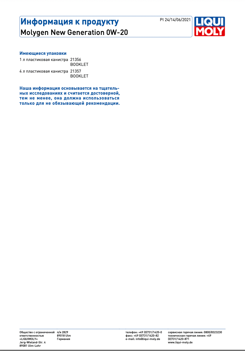 Ниже Вы можете прочитать отзывы на 21356 LiquiMoly НС-синтетическое моторное масло Molygen New Generation 0W-20 1л, ознакомится с подробными характеристиками, посмотреть интересные обзоры и фотографии на 21356 LiquiMoly НС-синтетическое моторное масло Molygen New Generation 0W-20 1л.