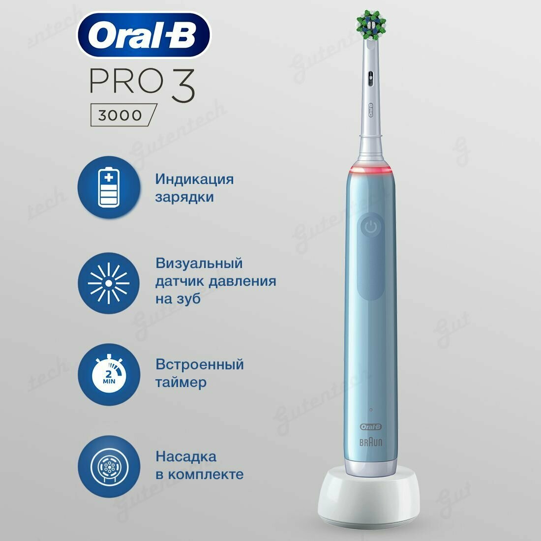 Электрическая зубная щетка Oral-B Pro 3 3000, голубой