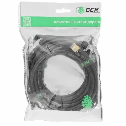 GCR Патч-корд PROF кат.7 ethernet 20.0m F/FTP, RJ45, CU, 28 AWG, литой, прямой , черный, экранированные коннекторы, GCR-52567 Greenconnect RJ45(m) - RJ45(m) Cat. 7 F/FTP LSZH 20м (GCR-52567)