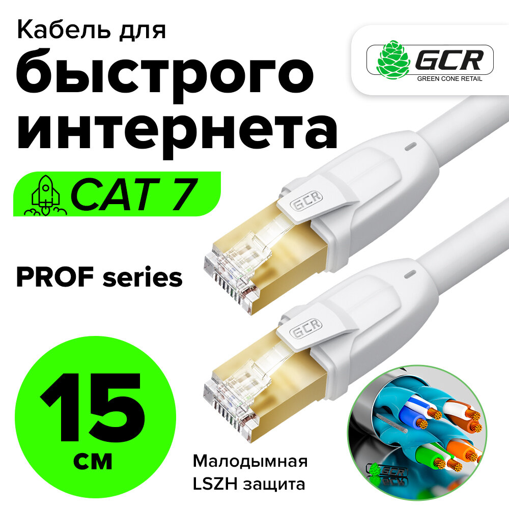Купить Короткий патч-корд 15см F/FTP PROF cat.7 10 Гбит/с RJ45 LAN компьютерный кабель для интернета 24K GOLD экранированный белый (GCR-FTP701)