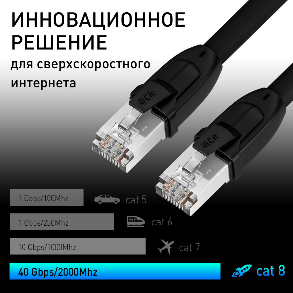 Патч-корд КАТ.8 3 метра FTP NEW Super Fast Lan кабель для интернета GCR LIMITED EDITION сверхскоростной RJ45 черный