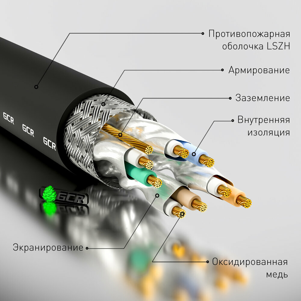 Интернет-кабель GCR PROF LSZH S/FTP cat.8 40 Гбит/с RJ45 LAN контакты 24K GOLD (GCR-LNC800) черный 3.0м