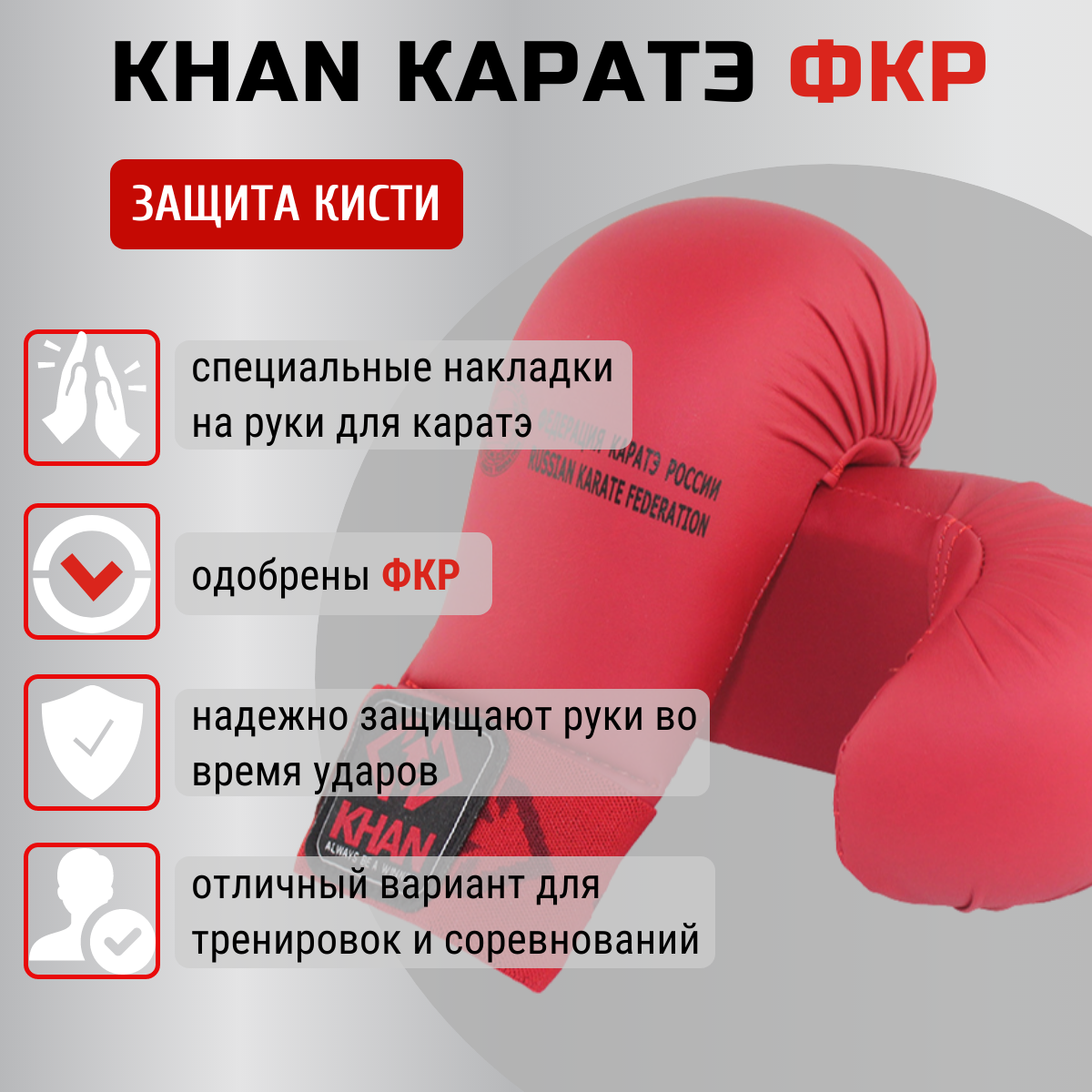 Защита кисти Khan Каратэ ФКР красные (Полиуретан, EVA, Khan, S, Красный) S