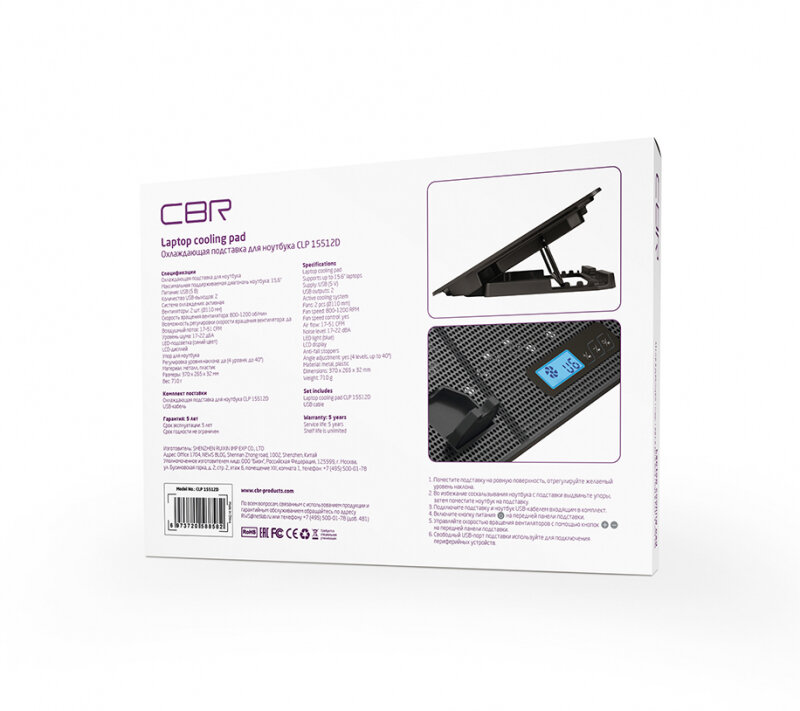 Охлаждающая подставка для ноутбука CBR CLP15512D до 15.6", 2 вентилятор, 2x USB, LED-подсветка, LCD-дисплей, алюминий + пластик