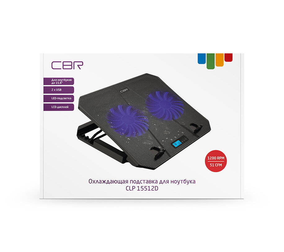 Охлаждающая подставка для ноутбука CBR CLP 15512D 370x265x32 мм, 2xUSB, вентиляторы2*110 мм, 51 CFM, LED.LCD дисплей