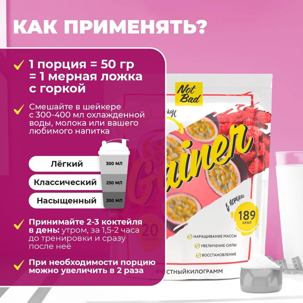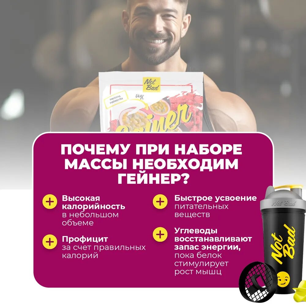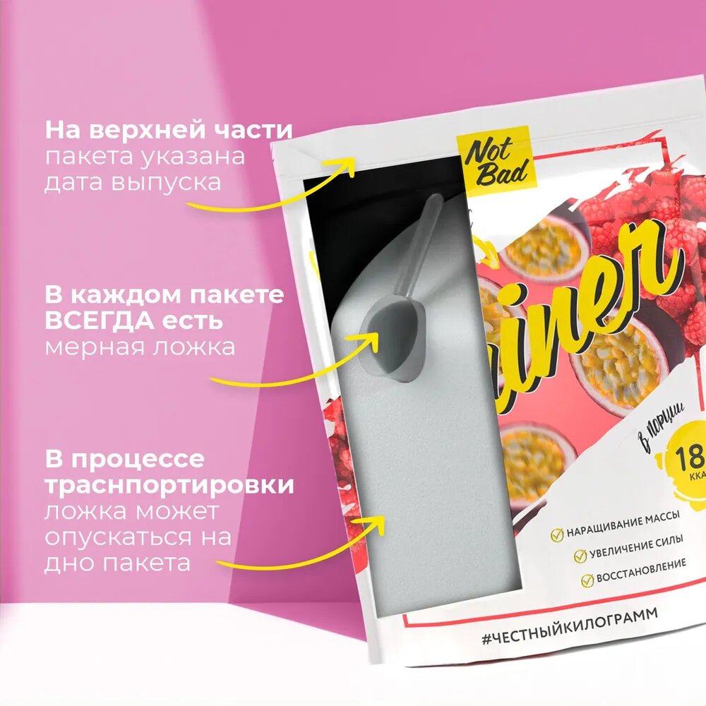 Купить Гейнер NOTBAD Gainer 1000 г (Малина-Маракуйя)