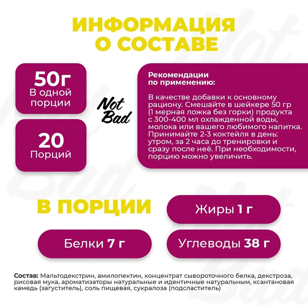 NotBad GAINER 1000 gr, 20 порции(й), ваниль