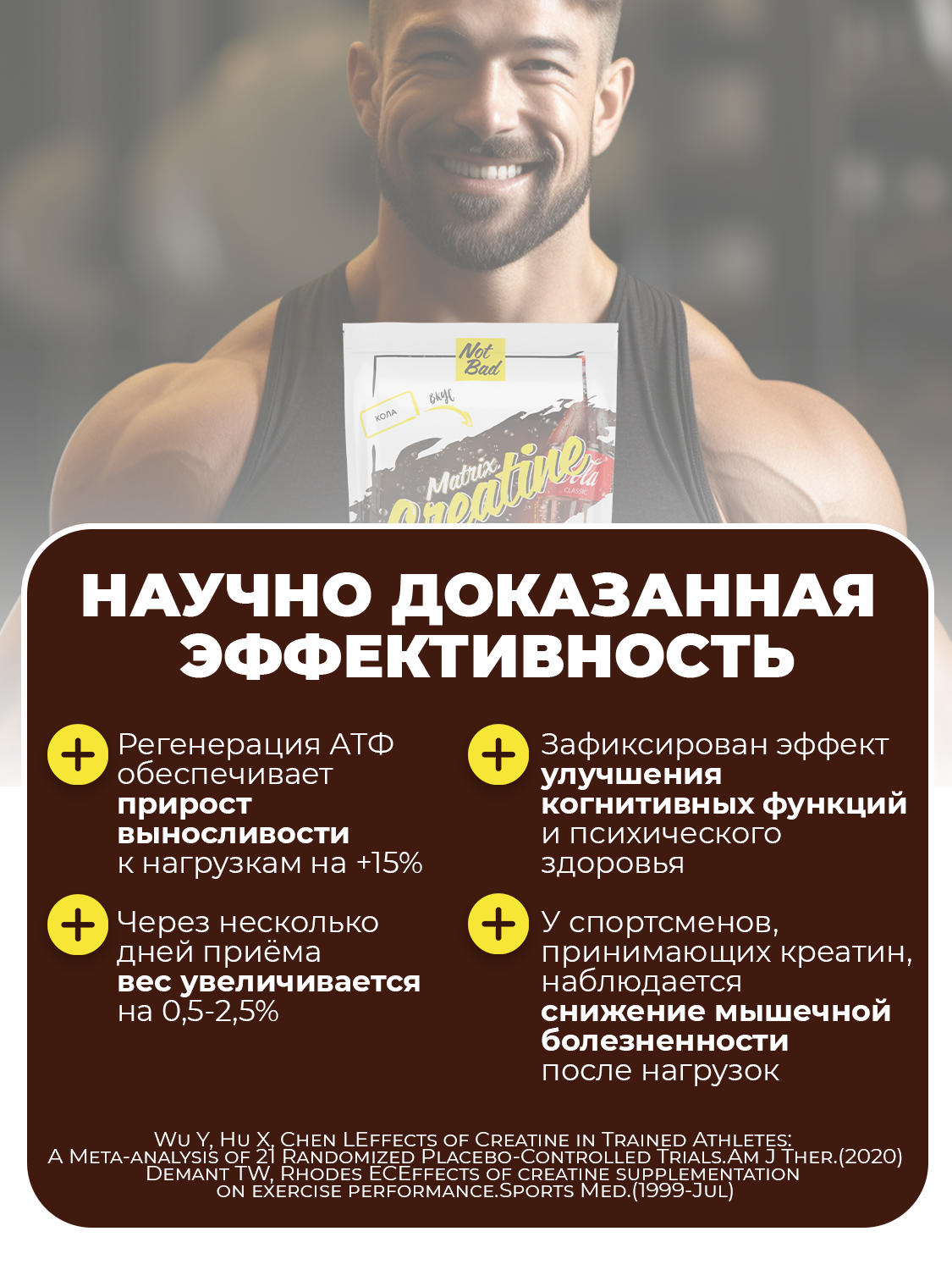 Ниже Вы можете прочитать отзывы на Креатин NOTBAD Creatine Matrix, 250 г (Кола), ознакомится с подробными характеристиками, посмотреть интересные обзоры и фотографии на Креатин NOTBAD Creatine Matrix, 250 г (Кола).