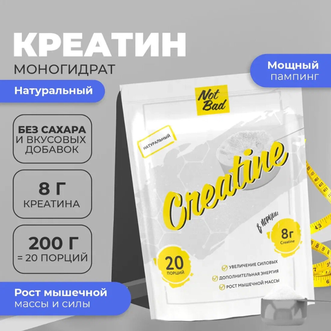 Креатин моногидрат NotBad Creatine, 200 гр, вкус Натуральный (без вкуса)