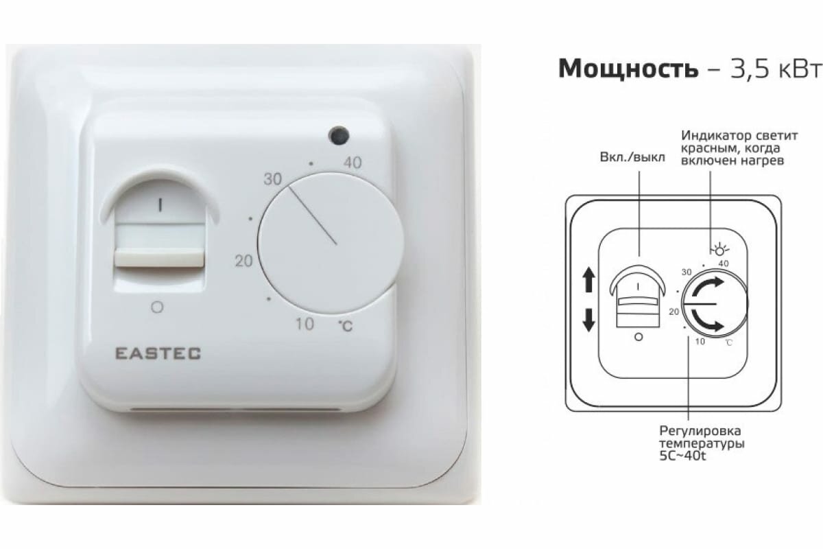 СохранитьТерморегулятор EASTEC RTC 70.26 (белый) 3,5 кВт интересное:
