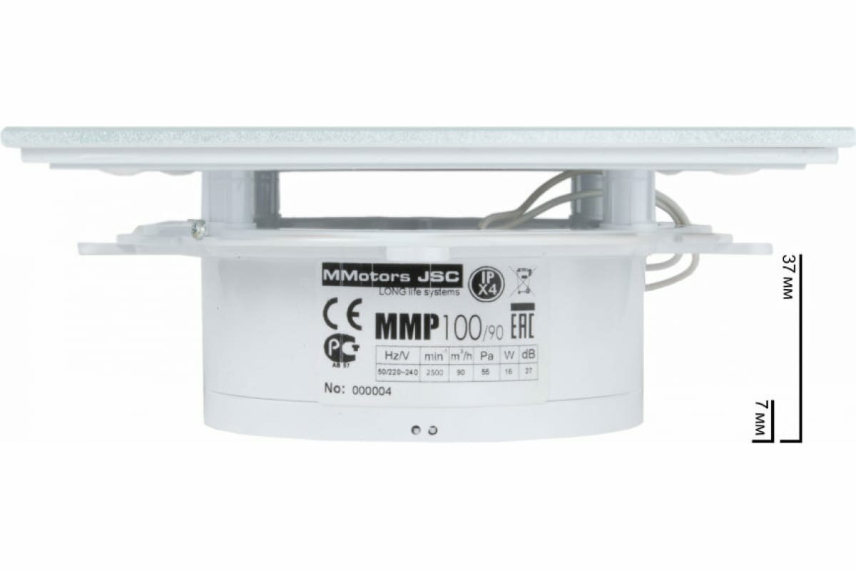 Вентилятор накладной ультра тонкий 37мм для ванной Mmotors ММР 100/90м3/ч, Светло серый