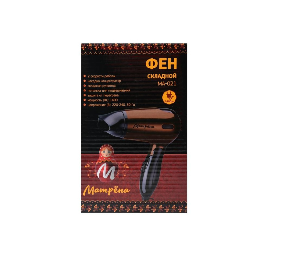 Фен Матрёна MA-021 дорожный складной (1400 Вт) 005941 .
