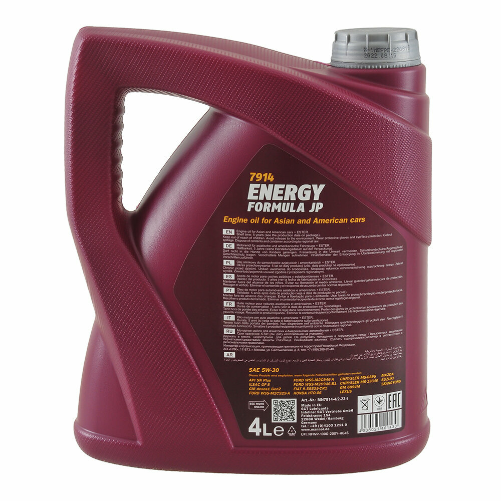 СохранитьМасло моторное MANNOL ENERGY FORMULA JP 5W30 4л интересное:
