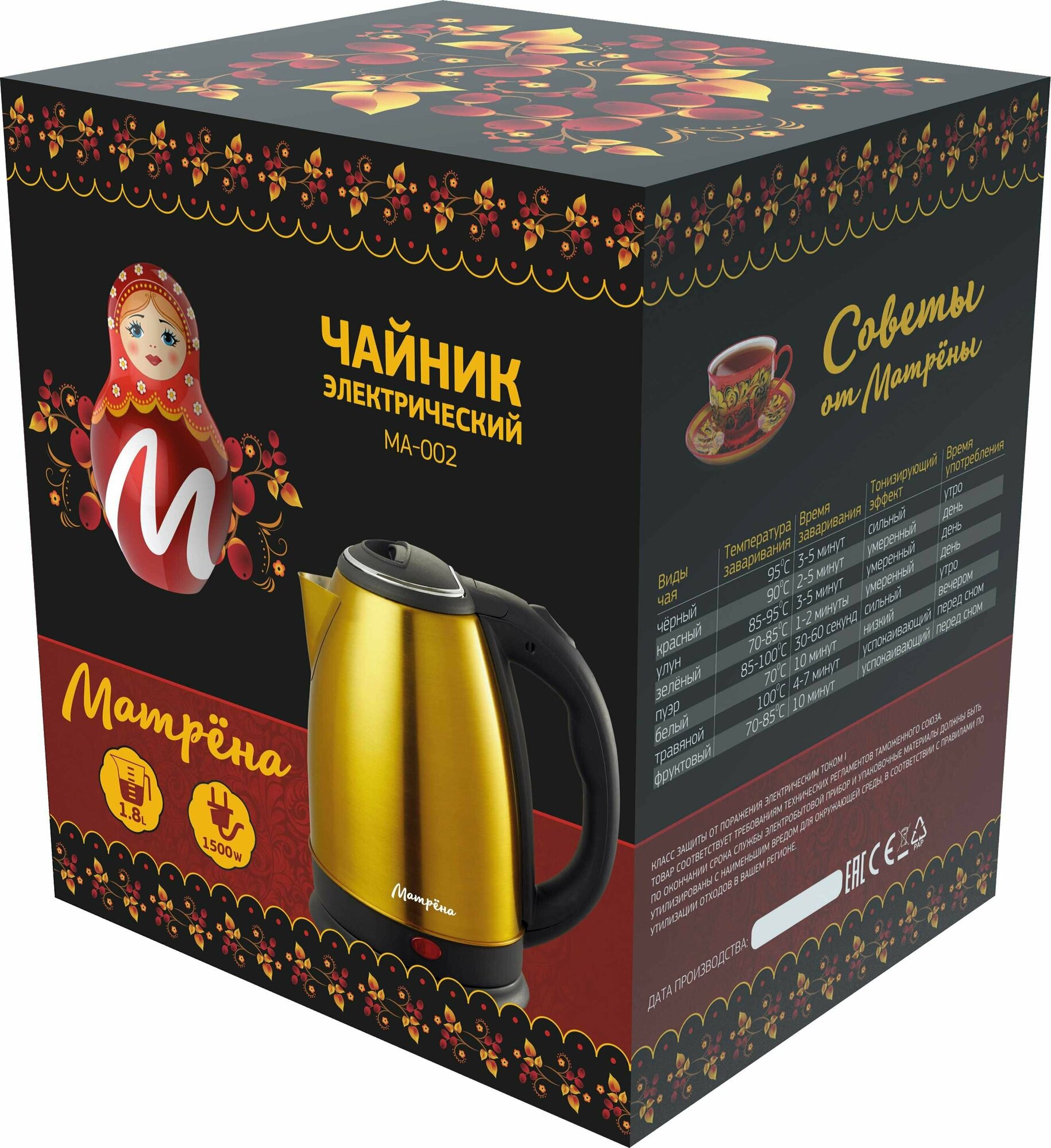 Матрёна Чайник электрический "матрёна" MA-002, металл, 1.8 л, 1500 Вт, жёлтый