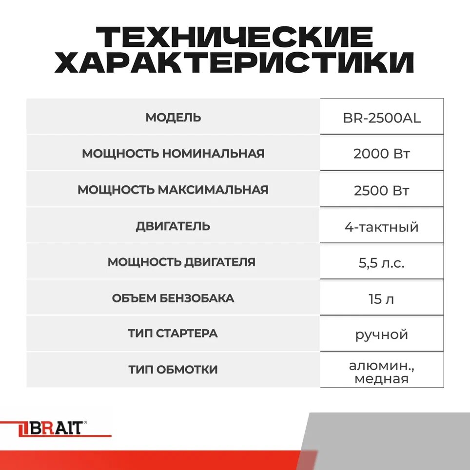 СохранитьГенератор бензиновый BRAIT BR2500-CU 02.01.047.029 интересное:
