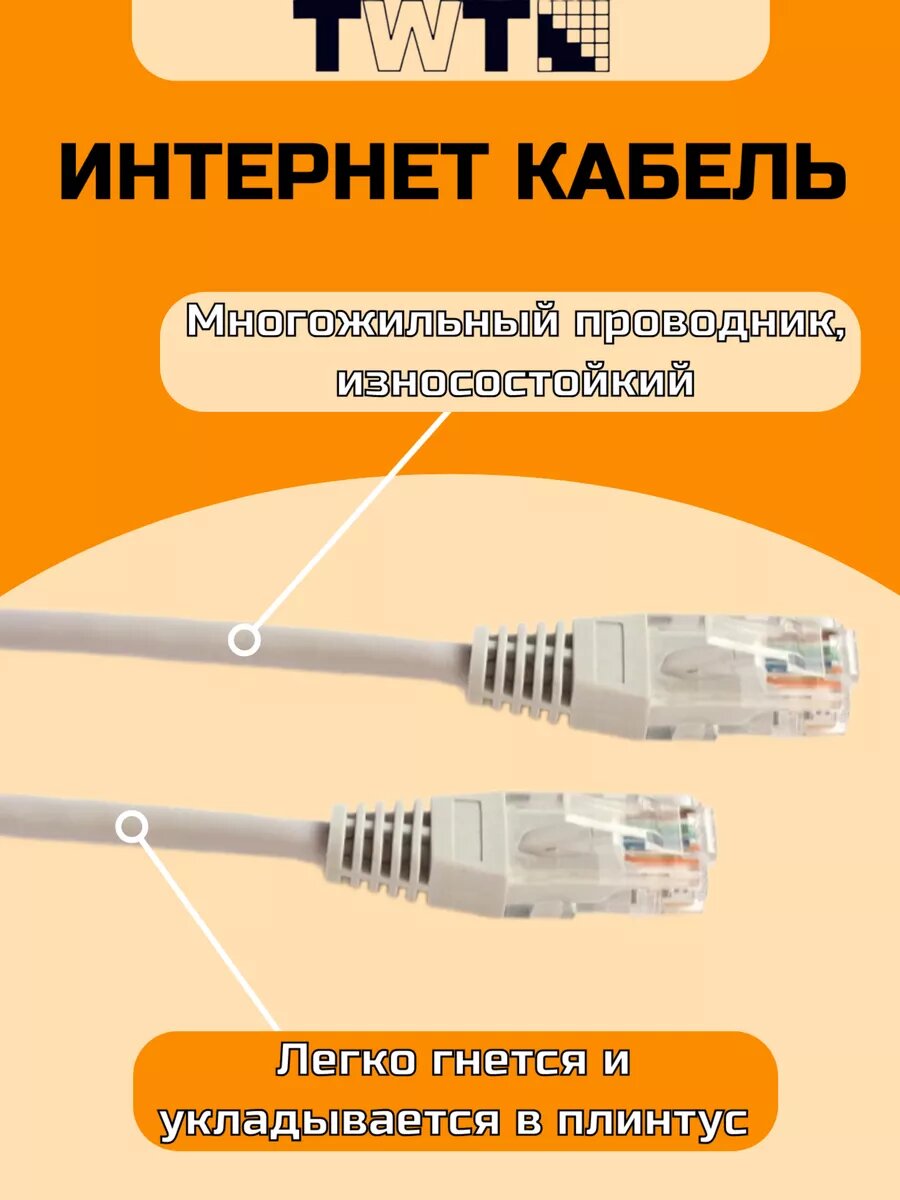 Патч-корд RJ45 - RJ45, 4 пары, UTP, категория 5е, 5 м, серый, TWT TWT-45-45-5.0-GY