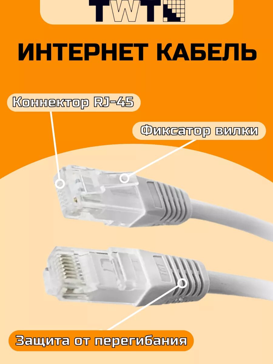 TWT Патч-корд RJ45 - RJ45, 4 пары, UTP, категория 5е, 10 м, белый, TWT TWT-45-45-10-WH