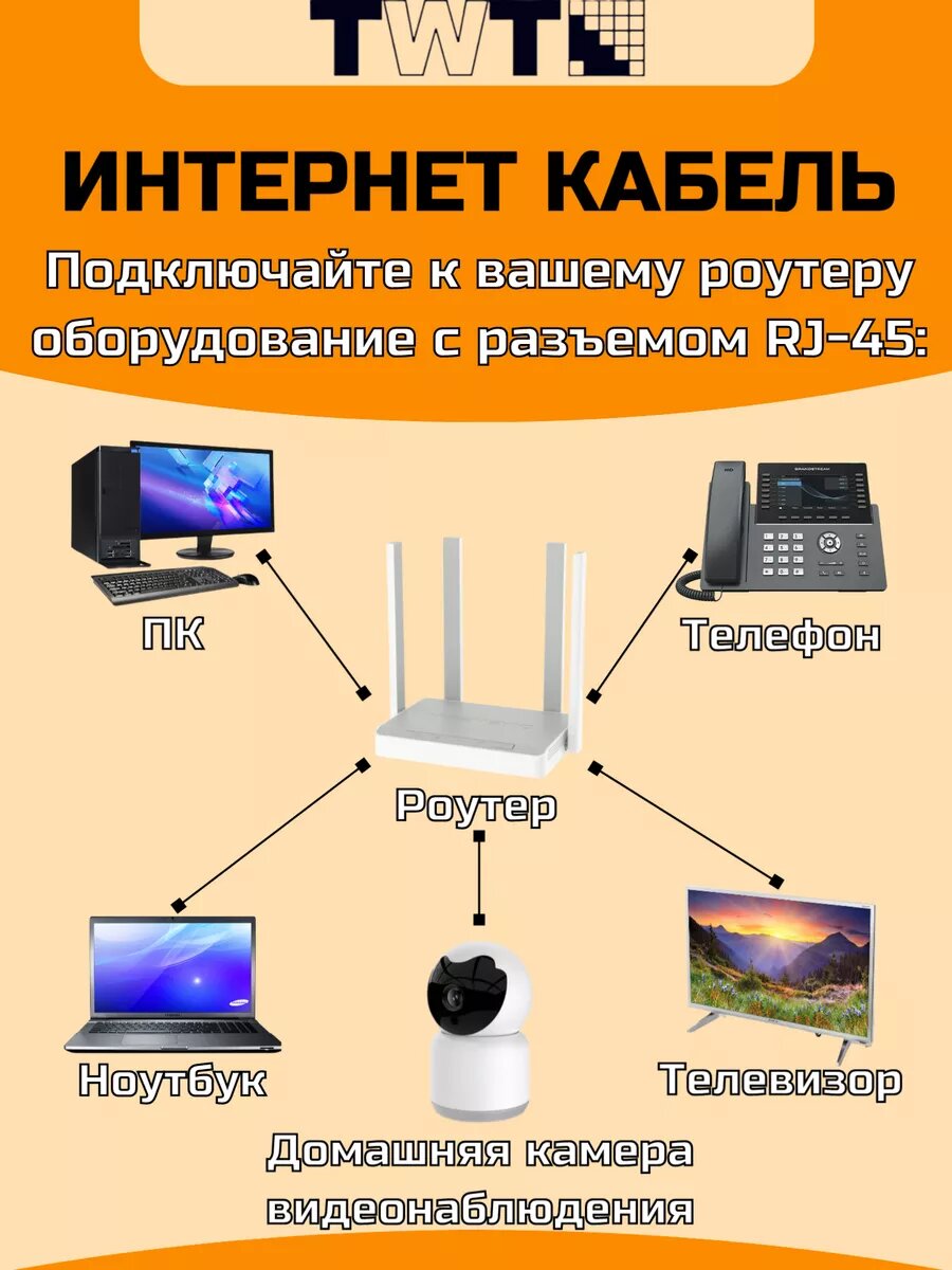 Патч-корд RJ45 - RJ45, 4 пары, UTP, категория 5е, 1.5 м, оранжевый, TWT TWT-45-45-1.5-OR