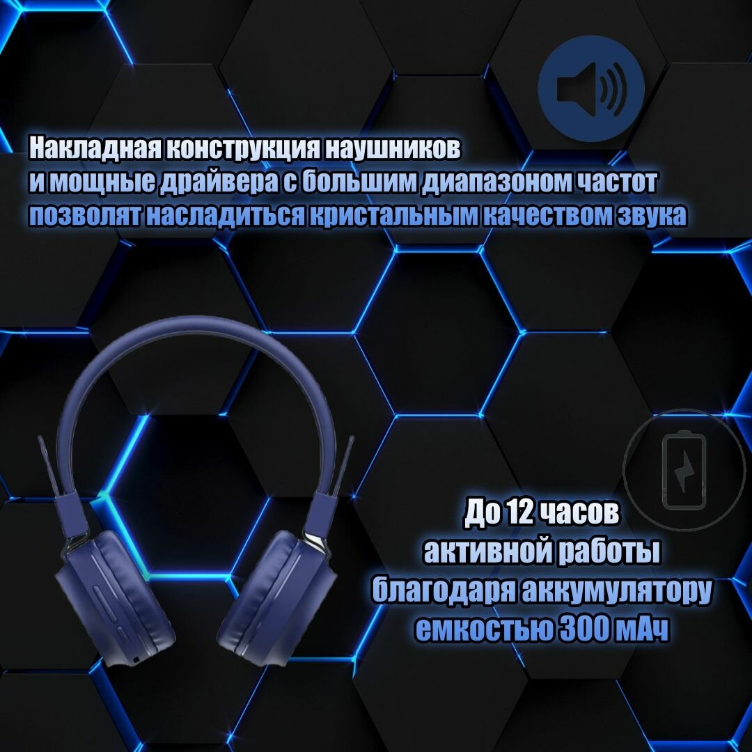 Наушники W25, беспроводные, накладные, BT5.0, 300 мАч, микрофон, синие