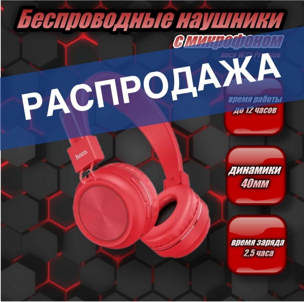 Наушники полноразмерные HOCO W25, Promise, Bluetooth, цвет: красный