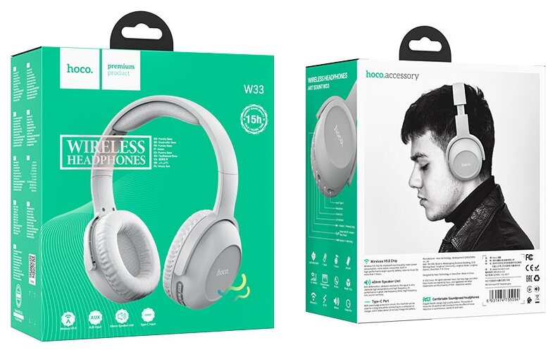 Bluetooth-наушники полноразмерные Hoco W33, серые, 1 шт
